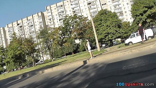 Unbelievable upskirt twat sight of a brown-haired Cougar