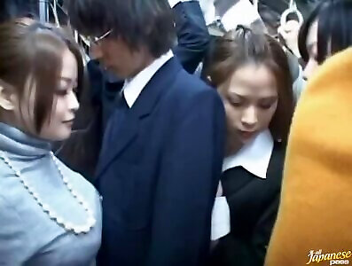 Upksirt Sight of a Busty Japanese In Croweded Bus
