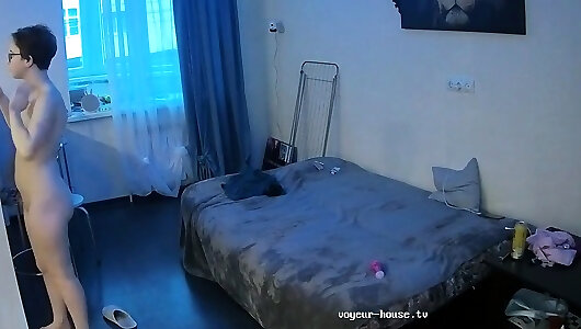 The blonde froze alone and decided to warm herself up a little with a hot fuck with a fuckmachine