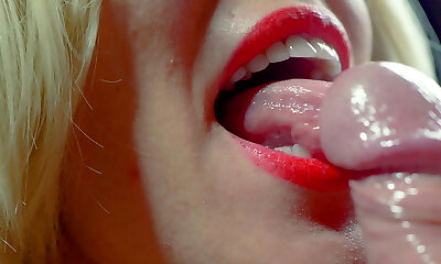 I love to please my fellow and suck his spunk-pump. Gentle handjob and blowjob from amateur light-haired MILF