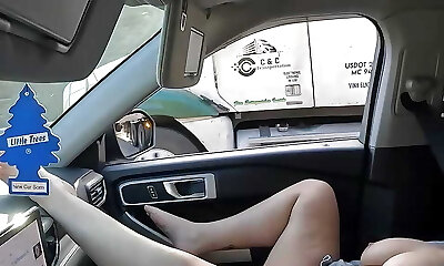 Sexy brunette has no shame and she loves wanking in her boyfriend's car