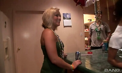 Nasty chick shows her breath-taking big all-natural tits at a party