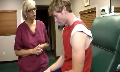 milf medic jizm giclée après branlette à son bureau