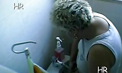 Mature hairy cootchie pisses on the toilet, the camera is watching her. Fat ass, vagina, asshole close-up. Cougar urinates.