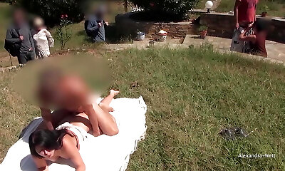 Public fuck-a-thon on the meadow! Donk and pussy creampie and facial cumshot