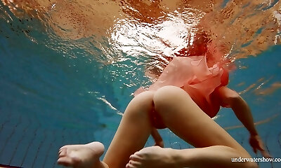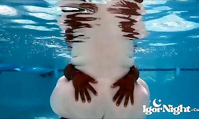 Katya Okuneva strips in her red underwear underwater