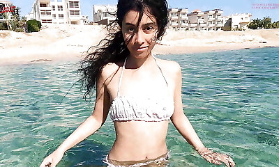 Voyeur underwater, hidden pool cam shows Arab gal playing with her big natural tits while masturbating with jet fountain!