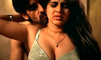Brunette slut with big innate tits in fishnet stockings