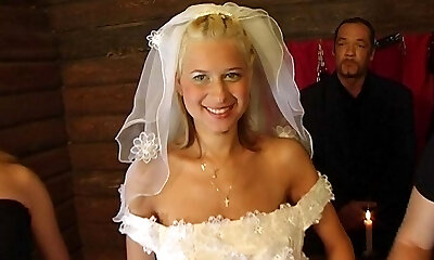 Whore bride Allison Moore is jerking and sucking knobs before wedding ceremony
