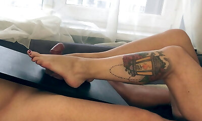 Milf with sexy legs gives FOOTJOB