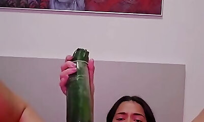 Tiny Milf Inserts Enormous Cucumber into Her Pussy Until She Cums Repeatedly