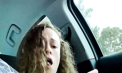 Blonde Pristine with huge knockers pleasuring her cunt in the garage