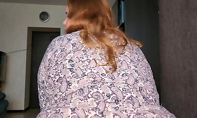 Chunky redhead young bombshell shows off her big boobs and orange ass