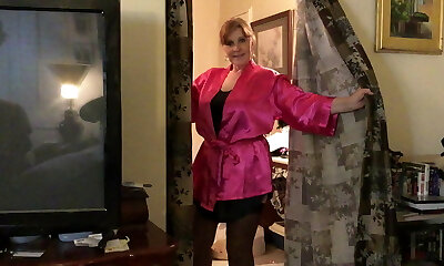 Mature BBW in slip and stocking cleaning while you watch
