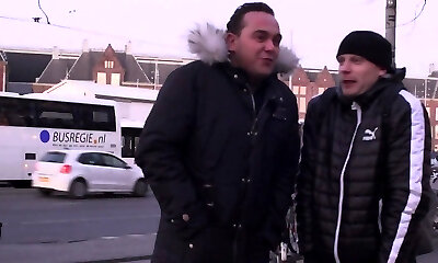 Swinger wife gives a forearm job and blowjob to a dark-hued stud