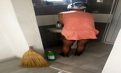 mature black maid with huge inborn breast fucks with her hooter-sling on