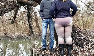 British Slut Wife In French Lace Tights Unwrapping Off In The Woods